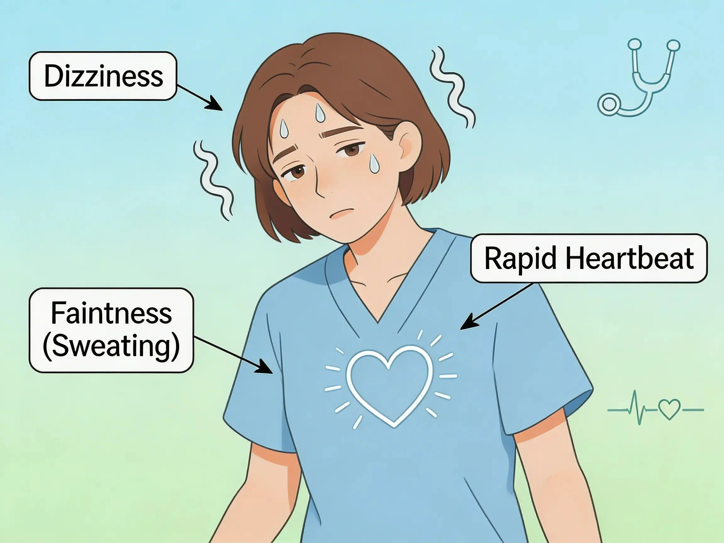 When a healthy person stands up, the body automatically adjusts blood flow to keep enough blood reaching the brain. In POTS, this adjustment does not work as efficiently. Blood may pool in the lower part of the body, and the heart compensates by beating much faster to maintain circulation. This rapid heart rate can feel uncomfortable and may be accompanied by symptoms such as chest tightness, shakiness, lightheadedness, or weakness. Although this response can help prevent fainting for some people, it often does not fully restore normal blood flow to the brain, which is why symptoms may continue even when a person remains standing.